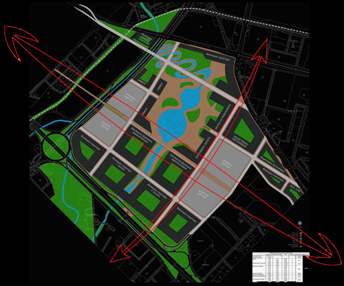 CHERCHER UNE FACON DE RELIER, CET ANCIEN TERRAIN MILITAIRE A LA VILLE.Le programme du concours présente plusieurs manquements. Il n'y a aucune notion quant aux liaisons avec les quartiers environnants et surtout, le plan d'urbanisme de Sofia, n'a pas songé de desservir cette nouvelle "emblème" de la capitale Bulgare par une ligne de métro ou autre ligne de transport en commun en adéquation avec l'ambition du projet. Les sollutions urbaines sont attendues de l'équipe gagante. Nous invitons les services municipaux appropriés d'effectuer la démarche nécessaire pour obtenir un résultat digne de ce nom. Dans le cadre du concours organisé par la Chambre des Architectes Bulgares, en parallèle du concours international remporté par Dominique Perrault, comme partie du développement de Sofia à nos yeux, nous donnons un principe simple cherchant à relier le quartier à la ville, sans remettre en cause le manque d'utilité d'une telle administration de nos jours pour la Capitale Bulgare. |